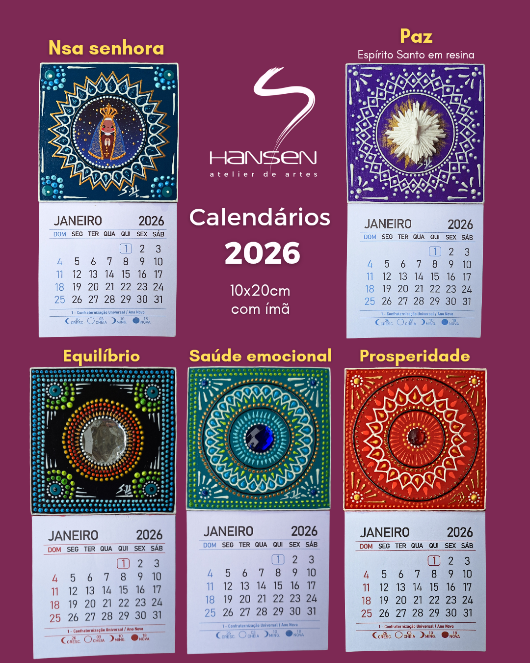 Calendário Ímã – Mandala da Paz (Feito à Mão)